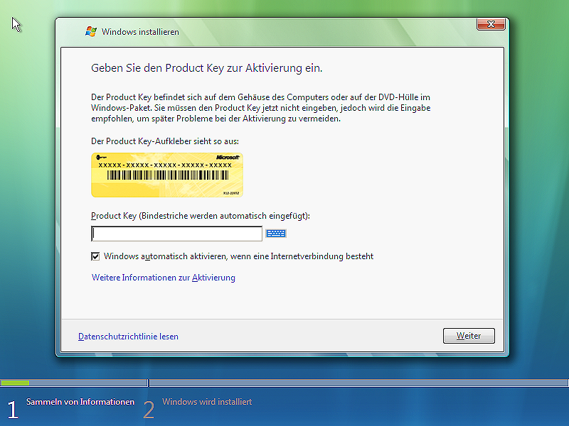 nicht registriert. Brauche bitte einen Produktschlüssel, damit ich Vista