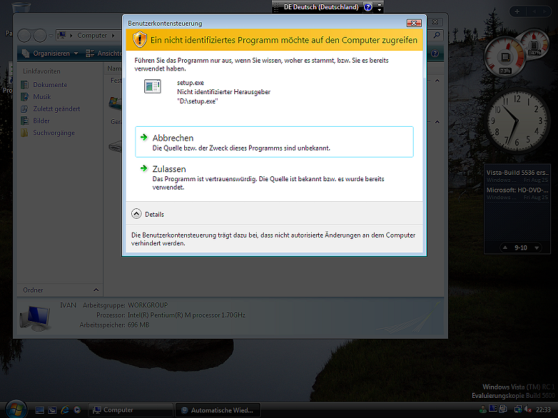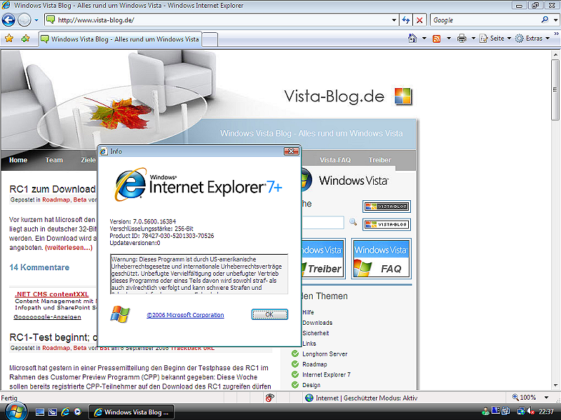 Habe Vista Beta 2 Build 5384.4 von Microsoft heruntergeladen aber mich